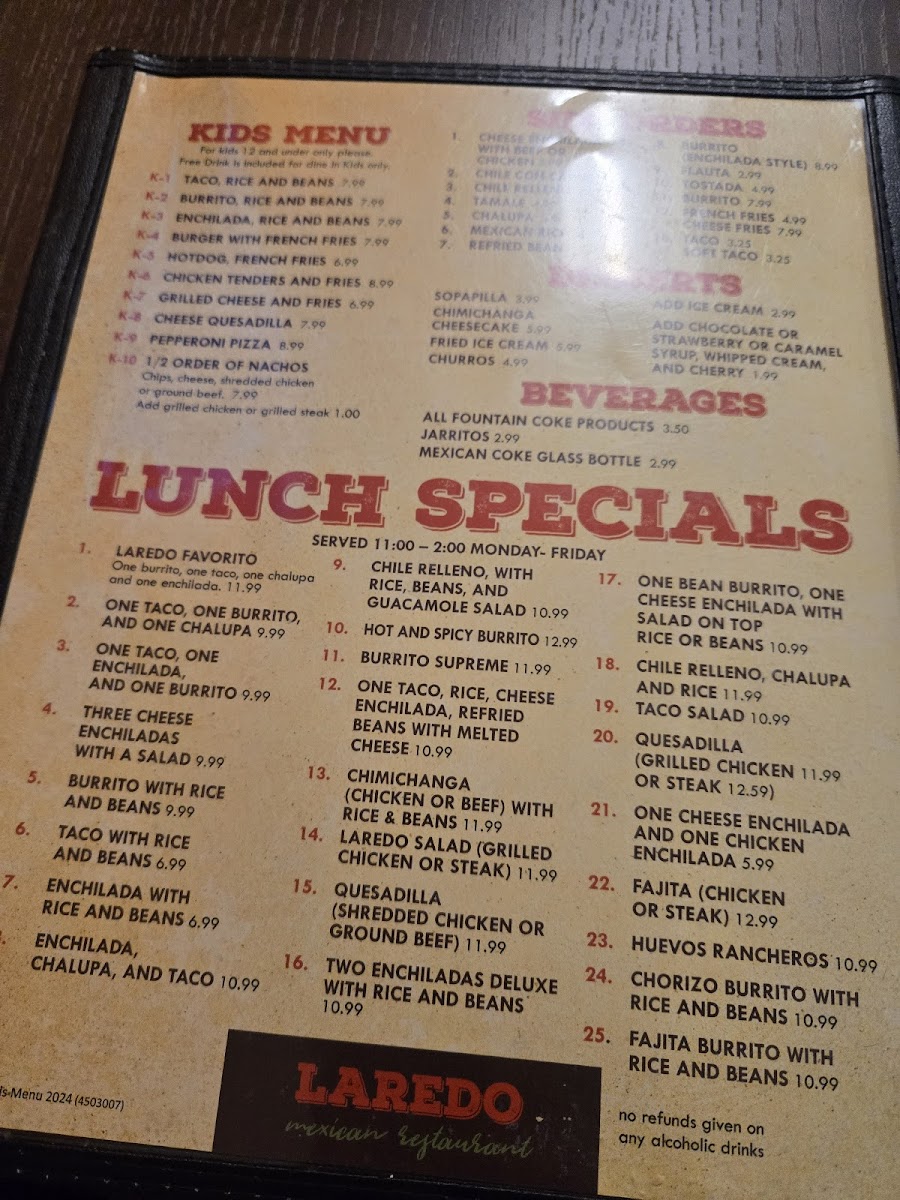 One Bean Burrito, One Cheese Enchilada With Rice Or Beans